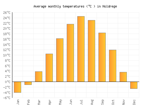 The bar chart below shows the average monthly peak daytime temperatures at Holdrege