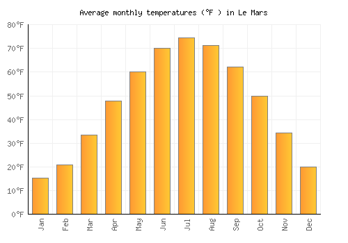 The bar chart below shows the average monthly peak daytime temperatures at Le Mars