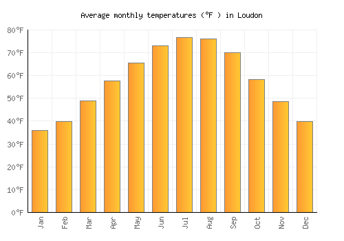 The bar chart below shows the average monthly peak daytime temperatures at Loudon