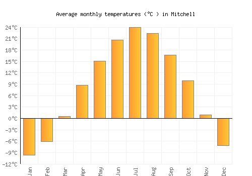 The bar chart below shows the average monthly peak daytime temperatures at Mitchell