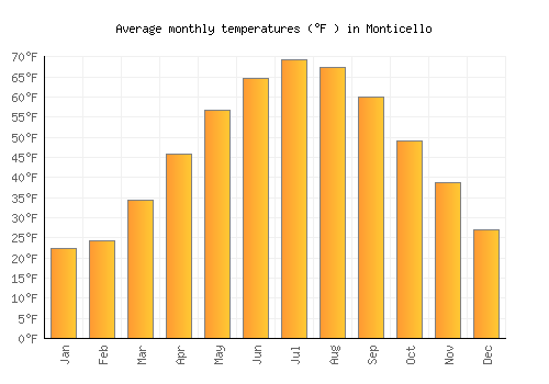 The bar chart below shows the average monthly peak daytime temperatures at Monticello