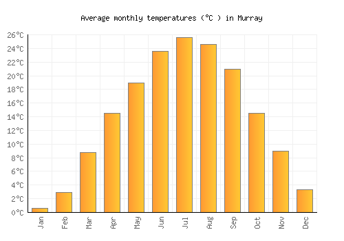 The bar chart below shows the average monthly peak daytime temperatures at Murray