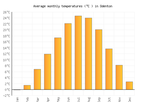 The bar chart below shows the average monthly peak daytime temperatures at Odenton