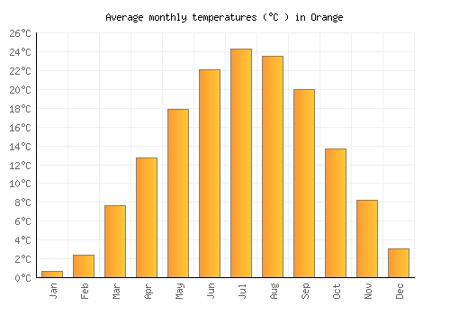 Average annual rainfall in Orange: 1047.367mm (412.3 inches)
