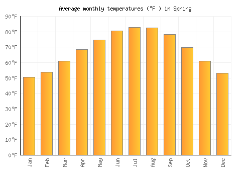 Average annual rainfall in Spring: 1094.866mm (431 inches)