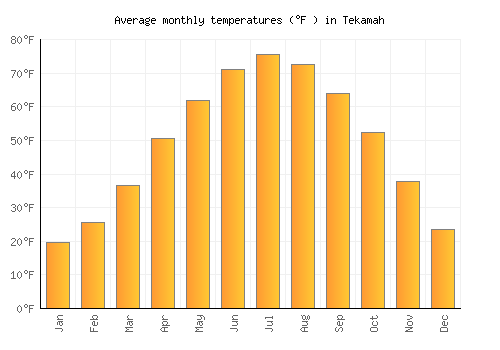 The bar chart below shows the average monthly peak daytime temperatures at Tekamah