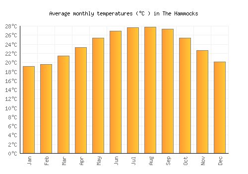 The bar chart below shows the average monthly peak daytime temperatures at The Hammocks