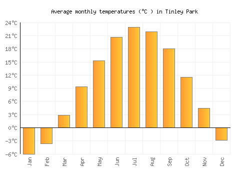 The bar chart below shows the average monthly peak daytime temperatures at Tinley Park