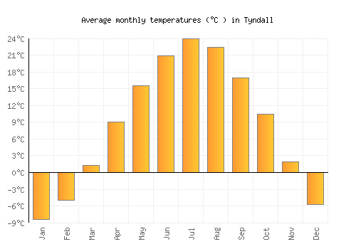 The bar chart below shows the average monthly peak daytime temperatures at Tyndall