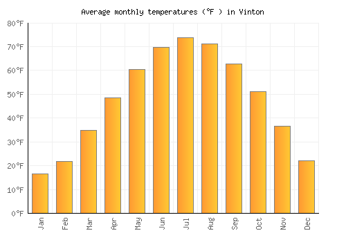 The bar chart below shows the average monthly peak daytime temperatures at Vinton
