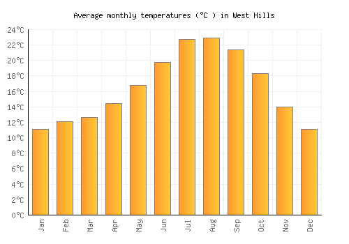Average annual rainfall in West Hills: 311.667mm (122.7 inches)