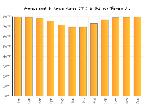 The bar chart below shows the average monthly peak daytime temperatures at Okinawa Número Uno