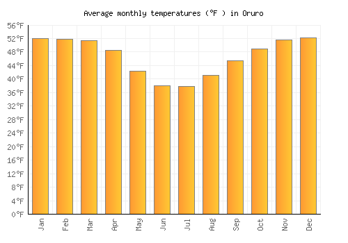 The bar chart below shows the average monthly peak daytime temperatures at Oruro