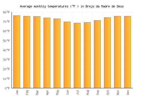 | Max °F | 76.3 | 75.6 | 75.4 | 73.8 | 73 | 69.8 | 68.4 | 69.1 | 71.2 | 74.1 | 75.6 | 75.7 |