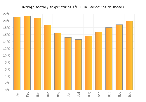 The bar chart below shows the average monthly peak daytime temperatures at Cachoeiras de Macacu