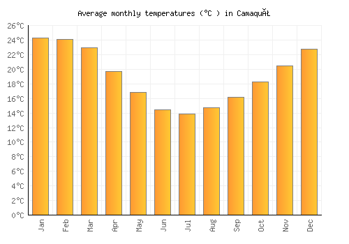 | °C | 24.4 | 25 | 24.6 | 22.9 | 20.3 | 18 | 16.4 | 16 | 16.7 | 18.5 | 20.6 | 22.6 |