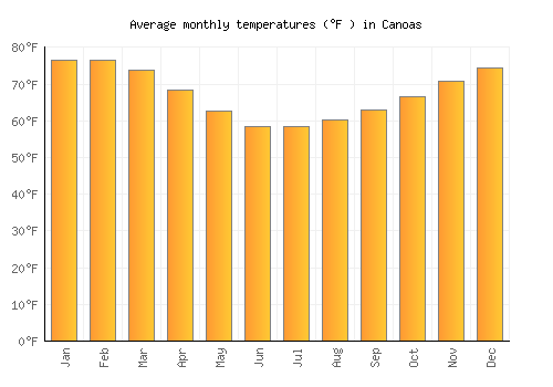 | Max °F | 76.5 | 76.5 | 73.9 | 68.4 | 62.6 | 58.5 | 58.5 | 60.1 | 62.8 | 66.7 | 70.7 | 74.3 |