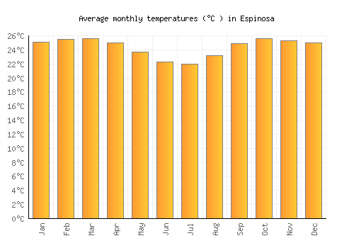 Average annual rainfall in Espinosa: 713.833mm (281 inches)