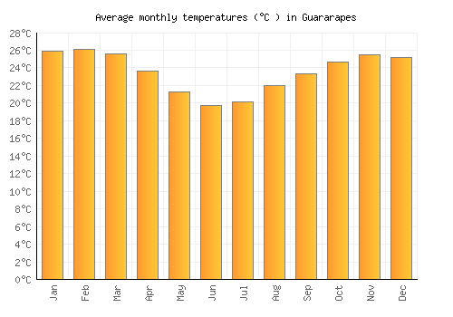 The bar chart below shows the average monthly peak daytime temperatures at Guararapes