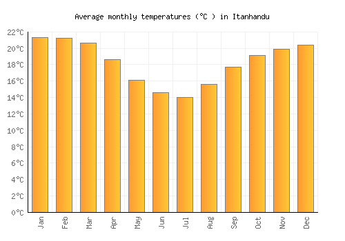 The bar chart below shows the average monthly peak daytime temperatures at Itanhandu