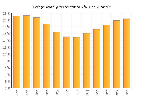 The bar chart below shows the average monthly peak daytime temperatures at Jundiaí