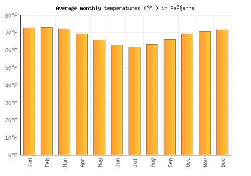 The bar chart below shows the average monthly peak daytime temperatures at Peçanha