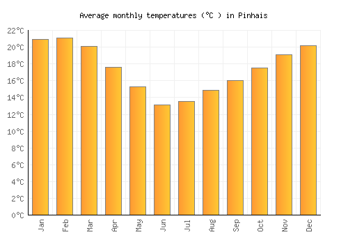 The bar chart below shows the average monthly peak daytime temperatures at Pinhais