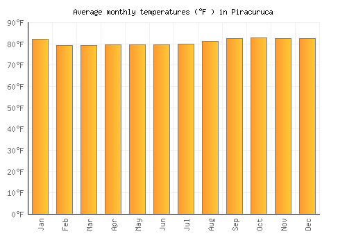 | °F | 82.2 | 82.7 | 83.2 | 83.6 | 83.2 | 82.4 | 81.1 | 80.3 | 80.1 | 80.4 | 81 | 81.6 |