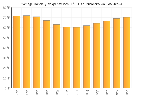 | °F | 79.9 | 80 | 79.2 | 75.8 | 72.1 | 69.7 | 70.3 | 72.2 | 73.7 | 75.4 | 78 | 78.3 |