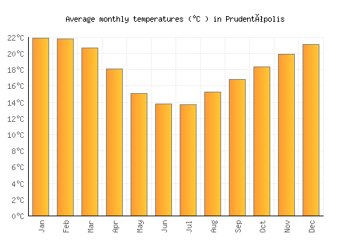 The bar chart below shows the average monthly peak daytime temperatures at Prudentópolis