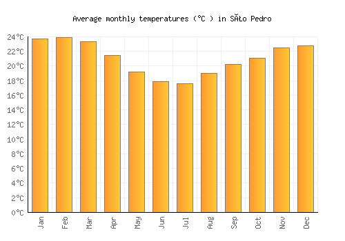 The bar chart below shows the average monthly peak daytime temperatures at São Pedro