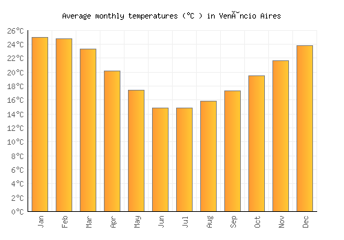 The bar chart below shows the average monthly peak daytime temperatures at Venâncio Aires
