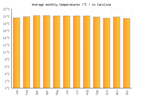 The bar chart below shows the average monthly peak daytime temperatures at Carolina