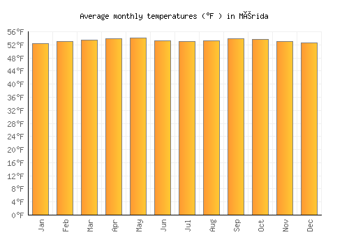 | Max °F | 52.3 | 53.1 | 53.4 | 53.8 | 54.1 | 53.2 | 53.1 | 53.2 | 53.8 | 53.6 | 53.1 | 52.7 |